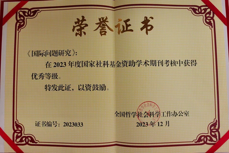 近日,在全国哲学社会科学工作办公室开展的国家社科基金资助学术期刊2023年度考核中,《国际问题研究》获评“优秀”。