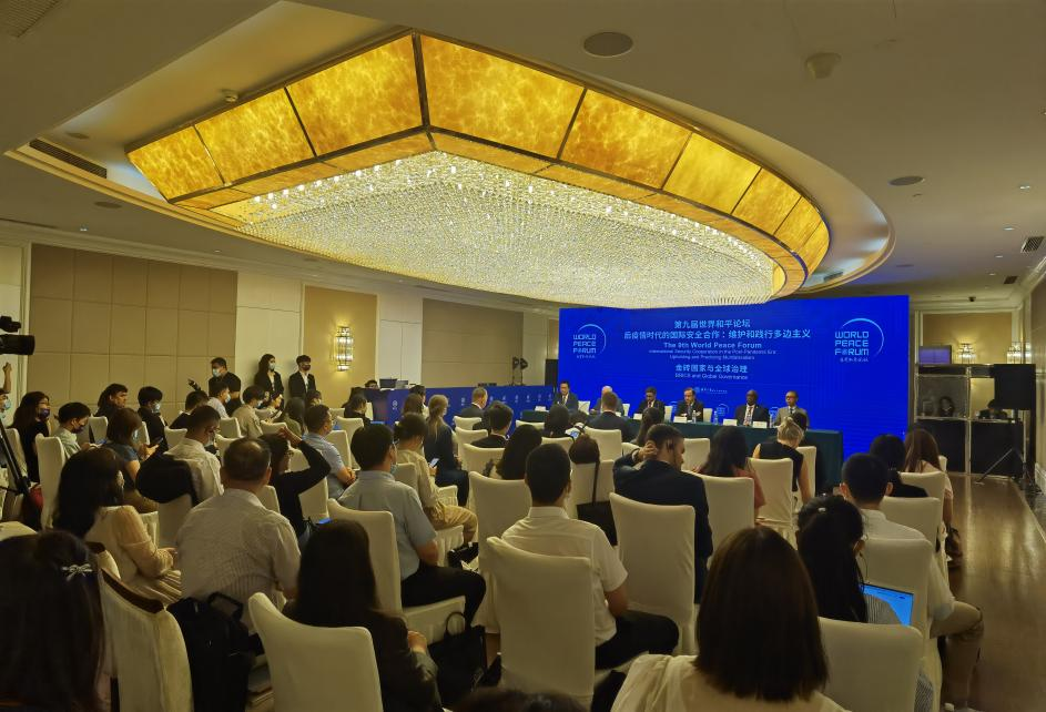 7月3日,第九届世界和平论坛在清华大学举行。国务委员兼外交部长王毅出席论坛开幕式并发表题为“守护世界和平,推动人类进步”的重要演讲。本届论坛以“后疫情时代的国际安全合作:维护和践行多边主义”为主题,中外嘉宾500余人以线上线下结合方式出席。中国国际问题研究院徐步院长应邀出席论坛并就金砖国家与全球治理议题作主旨发言。