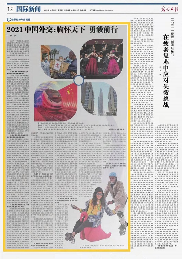 12月30日,中国国际问题研究院党委书记、院长、习近平外交思想研究中心秘书长徐步在《光明日报》发表文章《2021中国外交:胸怀天下 勇毅前行》,全文转载如下。