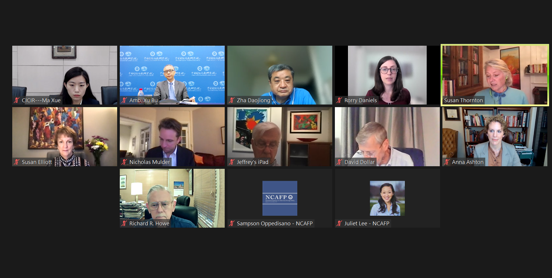 5月19日,中国国际问题研究院徐步院长应邀出席美国外交政策全国委员会(NCAFP)举行的中美关系视频研讨会。美国外交政策全国委员会亚太安全论坛主任董云裳(Susan A. Thornton)主持会议。