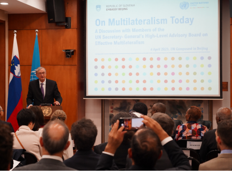 4月4日,中国国际问题研究院徐步院长出席由联合国驻华机构举行的“有效的多边主义研讨会”。会议由斯洛文尼亚驻华大使苏岚(Alenka Suhadolnik)主持,徐步院长和斯洛文尼亚前总统达尼洛·图尔克(Danilo Türk)作为联合国秘书长高级别咨询委员会委员作主旨发言。