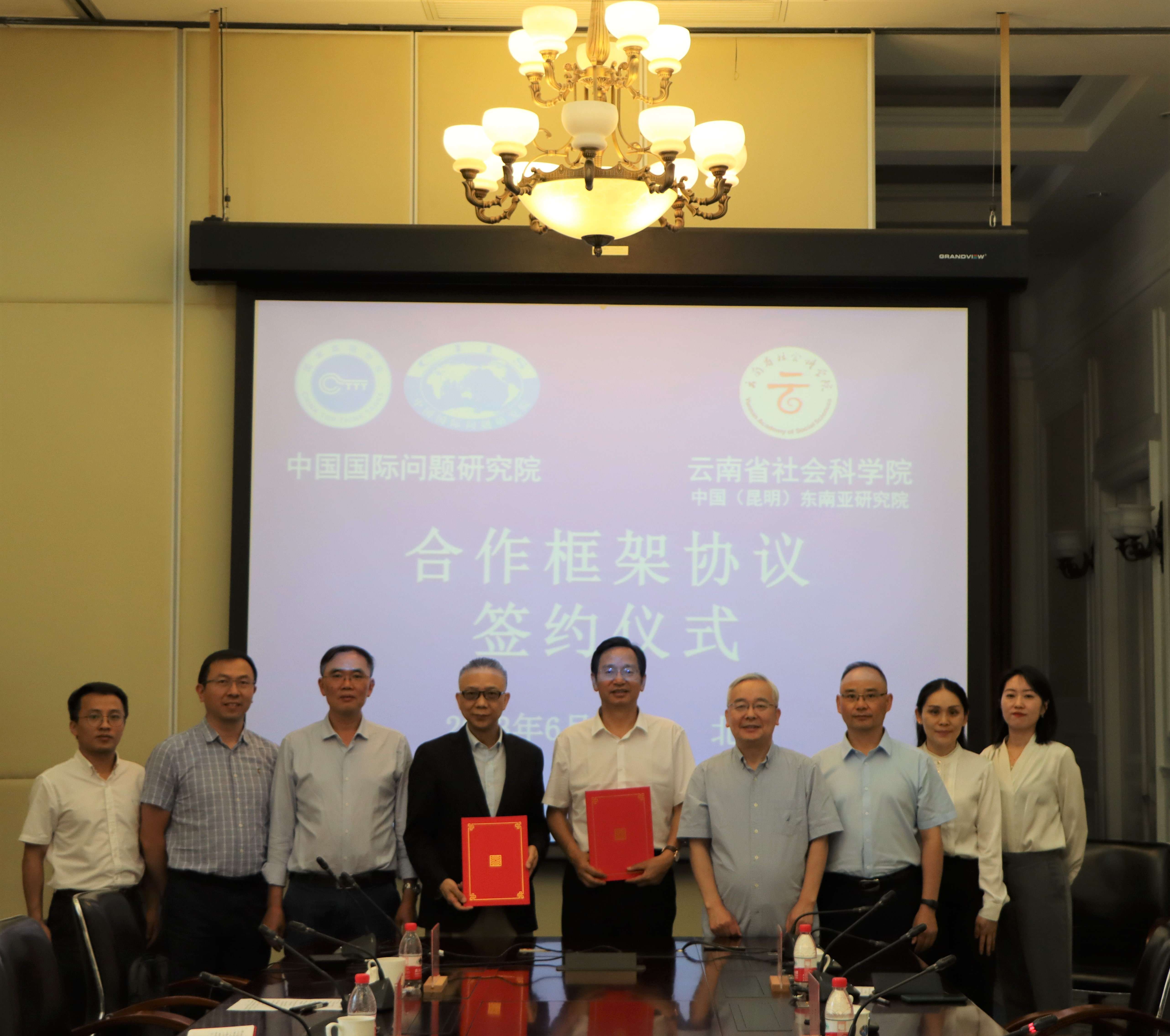 6月5日,中国国际问题研究院徐步院长会见云南省社会科学院杨正权院长一行,并举行合作框架协议签约仪式。
