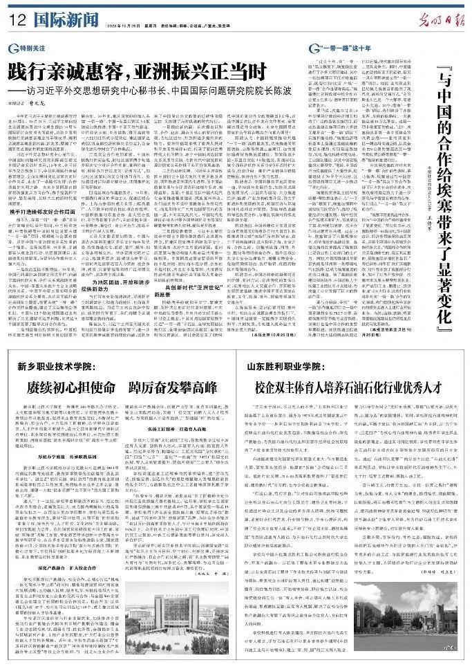 习近平外交思想研究中心秘书长、中国国际问题研究院院长陈波在接受光明日报记者采访时表示,10年来,在习近平外交思想指引下,中国积极践行亲诚惠容理念,全面发展同周边国家的友好合作关系,走出了一条睦邻友好、合作共赢的光明之路。未来中国同周边国家将加强重点方向合作,携手绘就和平安宁、繁荣美丽、友好共生的新时代亚洲愿景。
