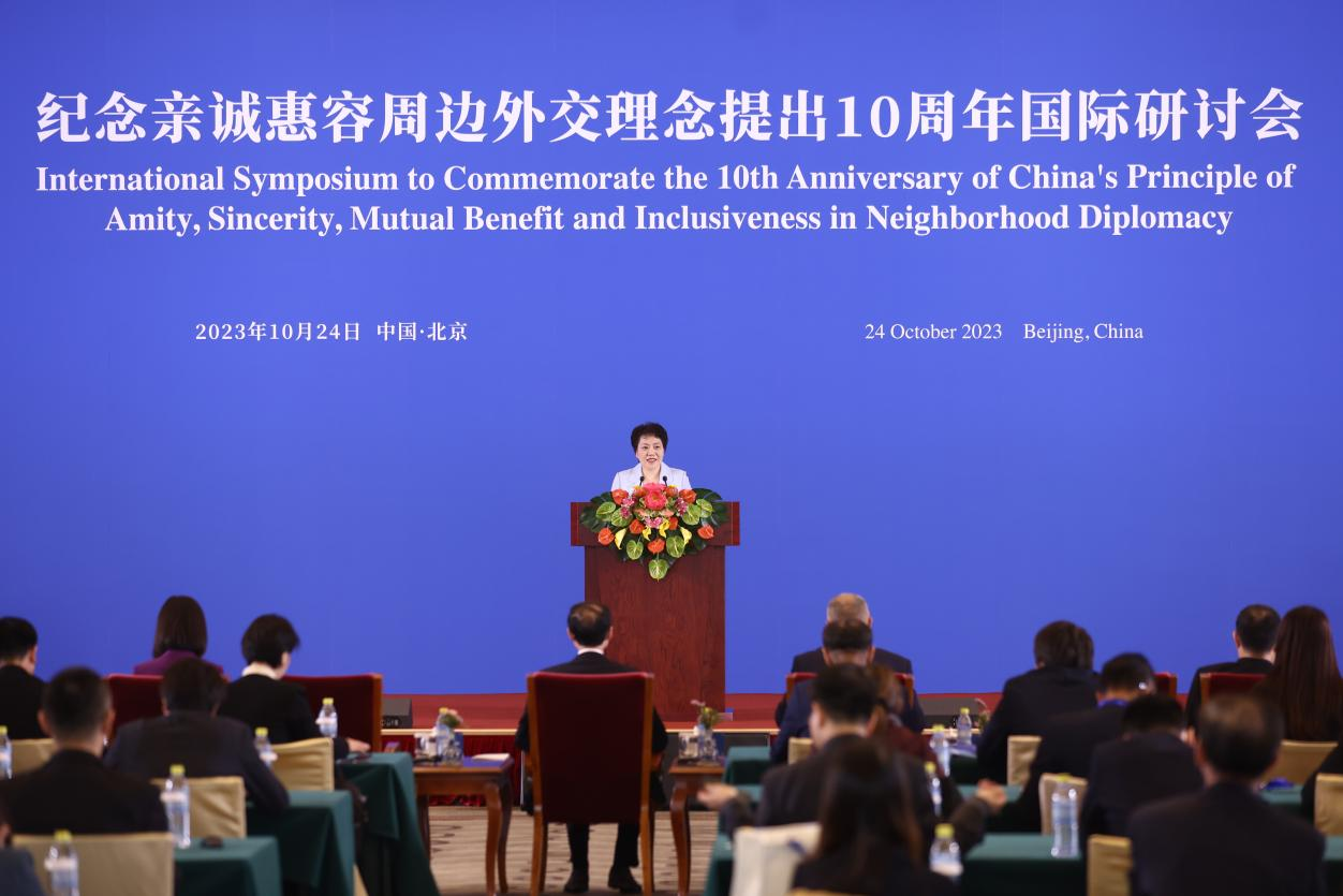 10月24日,纪念亲诚惠容周边外交理念提出10周年国际研讨会在京举行。研讨会由中央外办和外交部共同举办,中国国际问题研究院承办。中共中央政治局委员、中央外办主任王毅在研讨会开幕式上宣读习近平主席书面致辞并发表讲话。外交部副部长孙卫东作闭幕致辞。中国国际问题研究院院长陈波主持开、闭幕式。周边多国政要、部分国际和地区组织负责人、驻华使节、专家学者等200余人与会。研讨会当日还发布了《新时代中国的周边外交政策展望》文件。