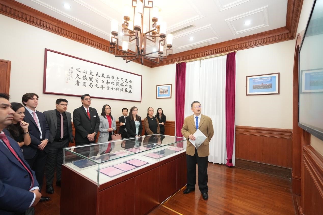 访华团成员表示,很荣幸参访习近平外交思想研究中心,人类命运共同体理念顺应时代需求,符合人类发展潮流。中国式现代化取得了伟大成就,对拉美国家自主选择发展道路具有重要参考意义。