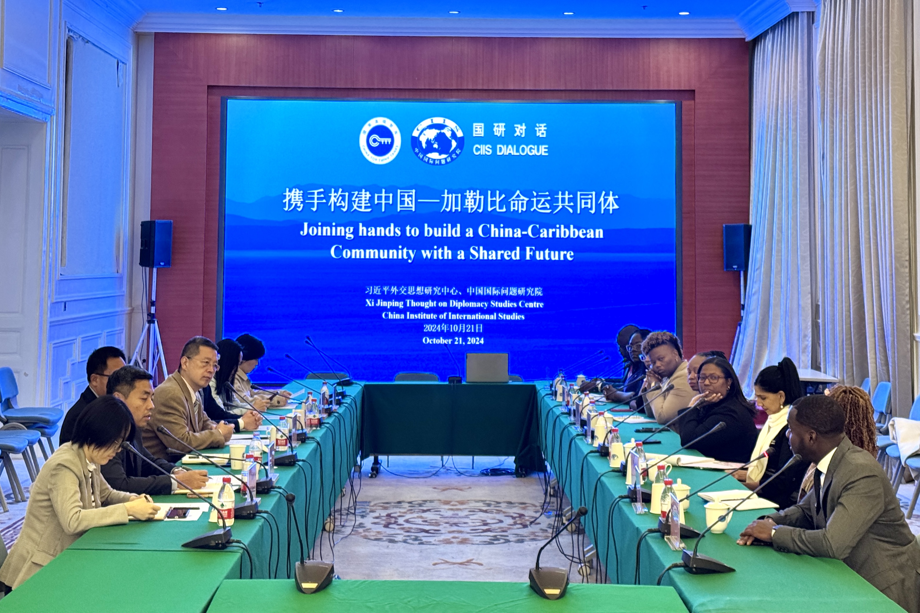 10月21日,加勒比国家外交官代表团参访习近平外交思想研究中心,并参加主题为“携手构建中国—加勒比命运共同体”的“国研对话”活动。该代表团由来自加勒比地区10个国家的10名外交官组成。
