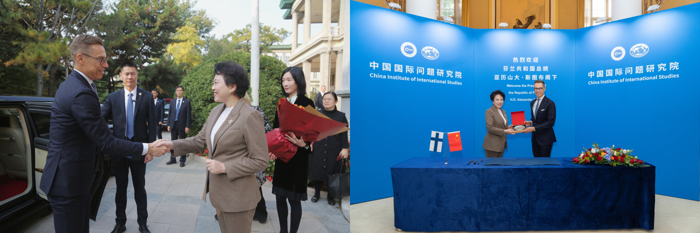 2024年10月30日,来华进行国事访问的芬兰共和国总统斯图布到访中国国际问题研究院。芬兰驻华大使明凯,芬兰总统府秘书长蒂耶拉拉等陪同。