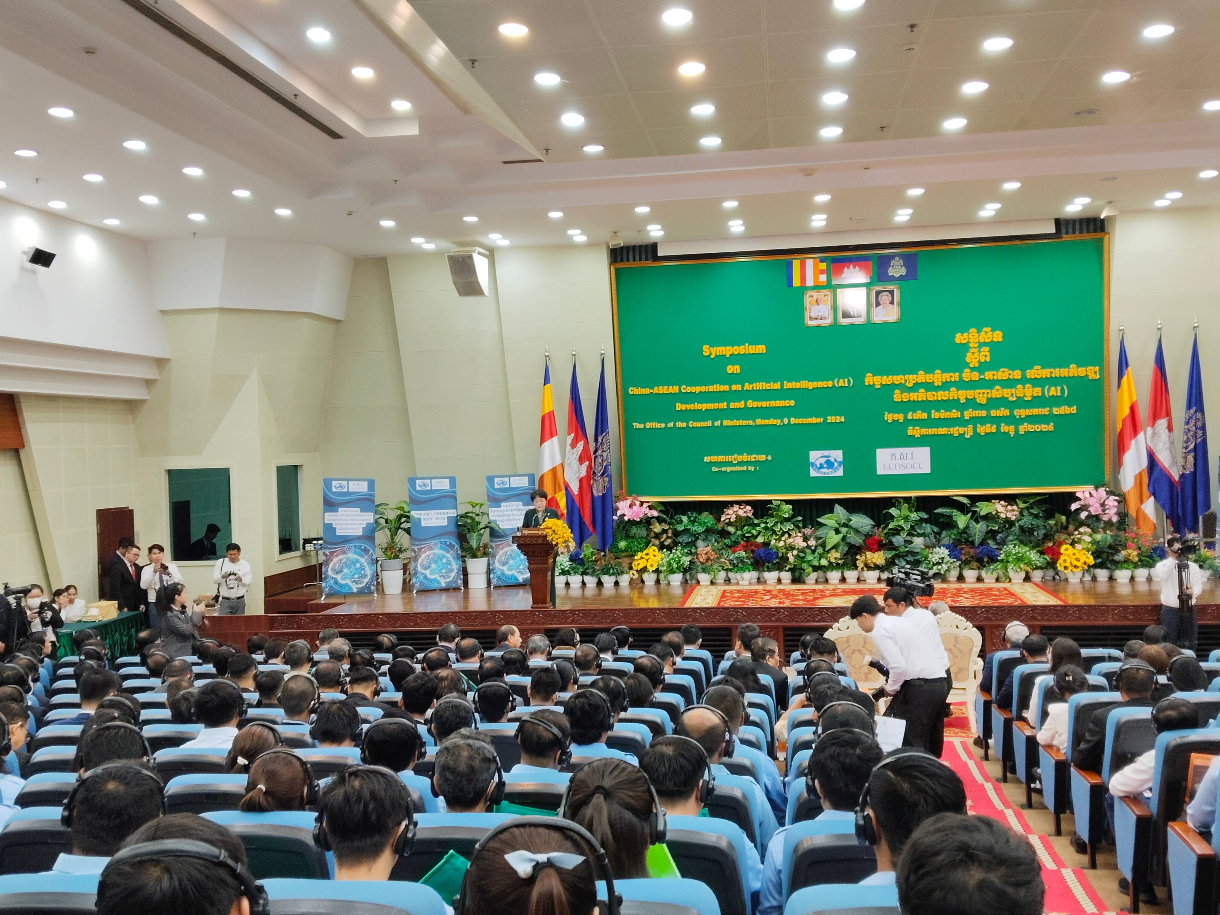 研讨会由国研院同柬埔寨经济、社会和文化理事会联合举办。来自中国和东盟国家的500余位官员、学者、媒体、企业人士以及其他国家和国际组织驻柬代表与会。柬埔寨常务副首相兼内阁办公厅大臣翁赛维索、中国驻柬埔寨大使汪文斌出席会议开幕式并致辞。柬埔寨国务大臣,经济、社会和文化理事会主席陈乐提和中国信息通信研究院副总工程师王爱华分别作主题发言。国研院专家学者参加了“中国—东盟在人工智能领域的合作:推动包容韧性发展”主论坛和“全球人工智能治理现状:风险和应对”平行分论坛等的研讨。
