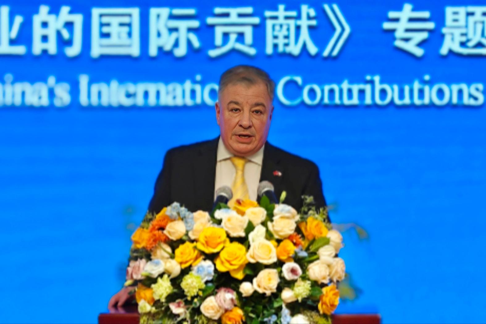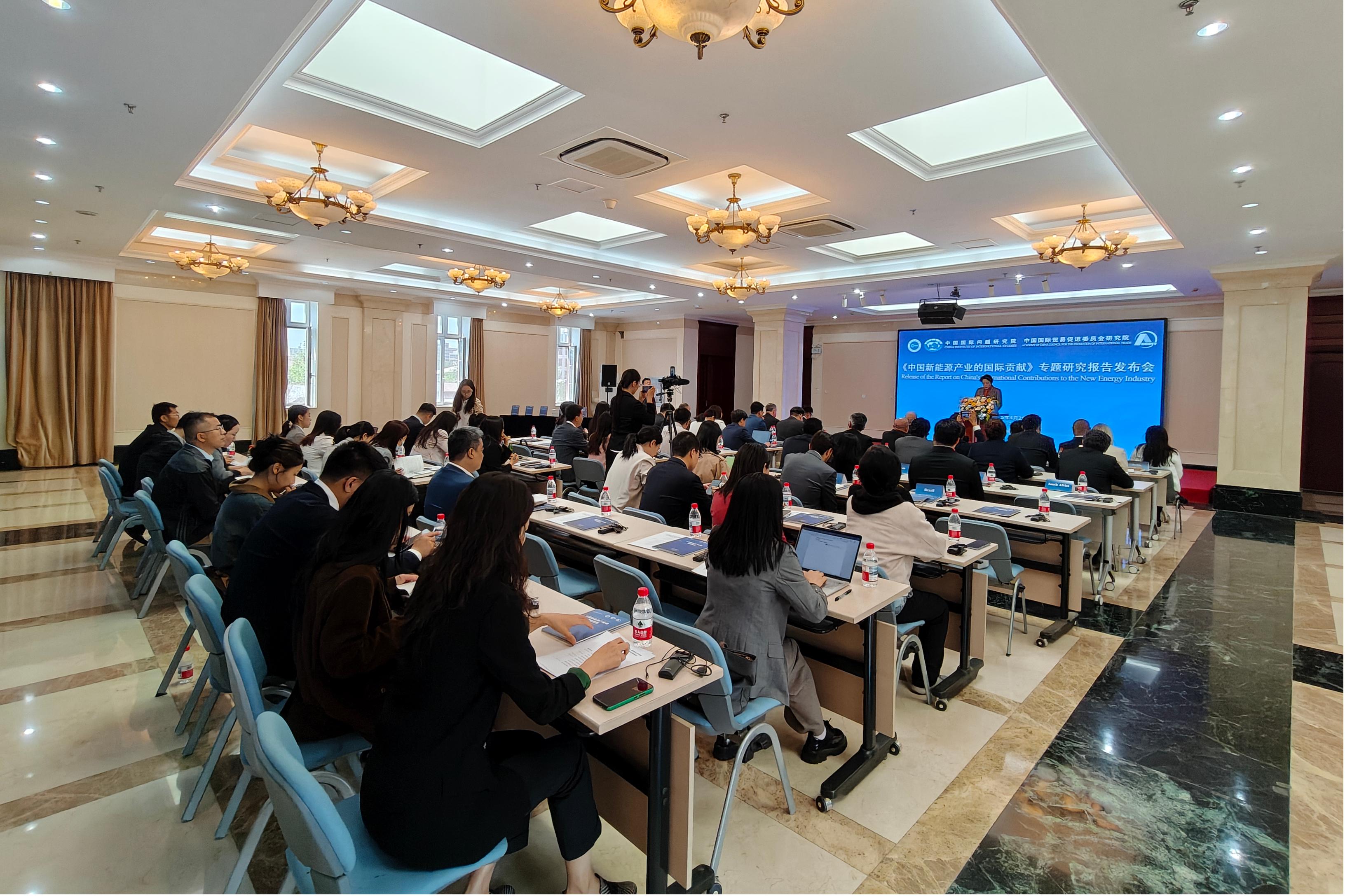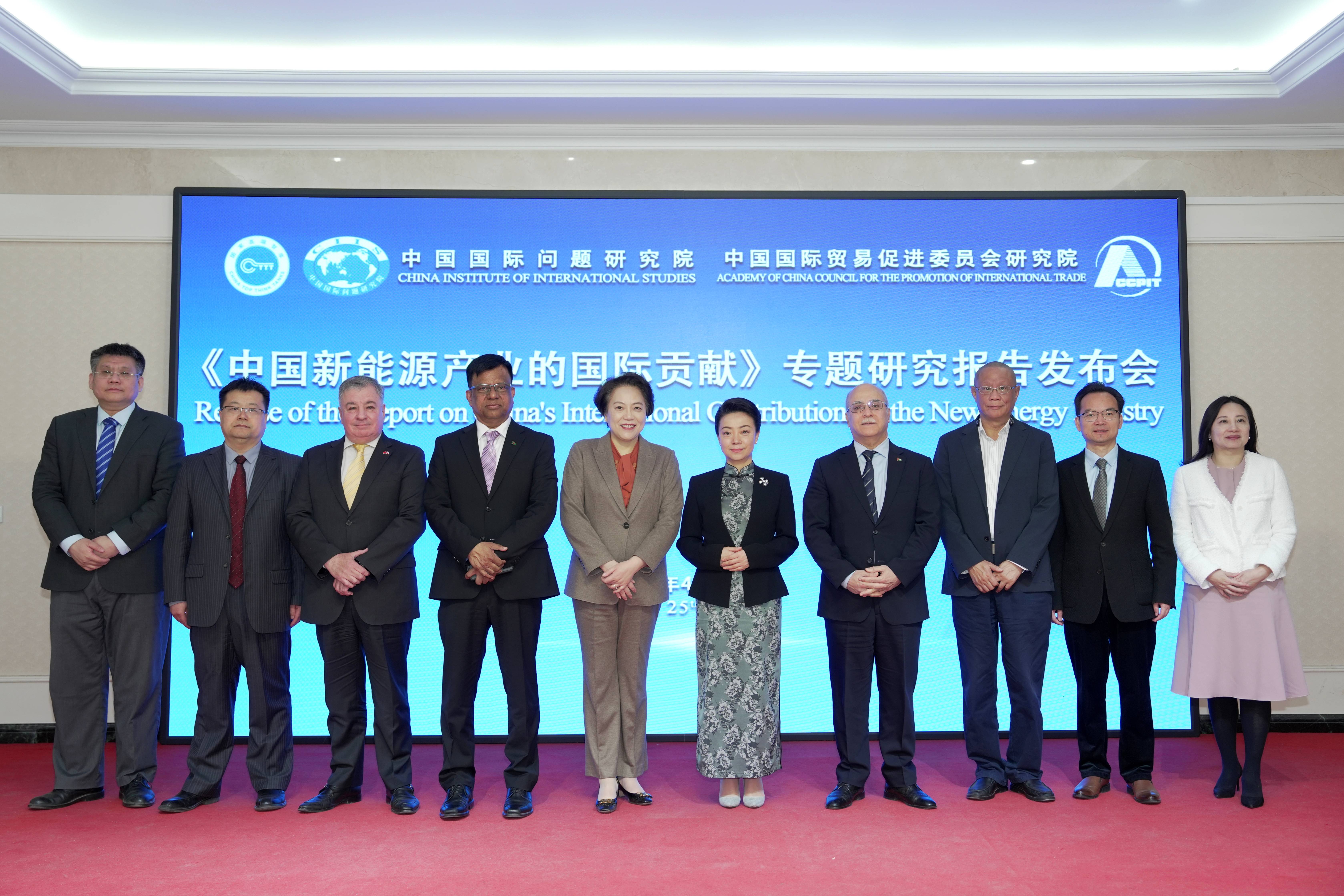 2025年4月25日,中国国际问题研究院和中国国际贸易促进委员会研究院联合举办《中国新能源产业的国际贡献》研究报告发布会。中国国际问题研究院院长陈波,中国国际贸易促进委员会研究院院长赵萍,约旦驻华大使胡萨姆·侯赛尼,孟加拉驻华大使纳兹穆尔,智利驻华使馆临时代办万岚苏出席发布会并致辞。中国国际问题研究院副院长刘飞涛主持发布会。