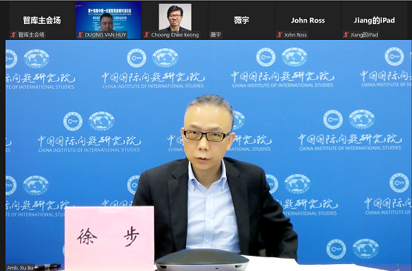 9月20日,中国国际问题研究院院长、中国前驻东盟特命全权大使徐步在线出席第十四届中国—东盟智库战略对话论坛并作主旨发言。本次论坛由中国社会科学院主办、广西社会科学院承办,来自中国以及柬埔寨、老挝、马来西亚等东盟国家的专家学者围绕“携手建设更为紧密的中国—东盟命运共同体”进行研讨。