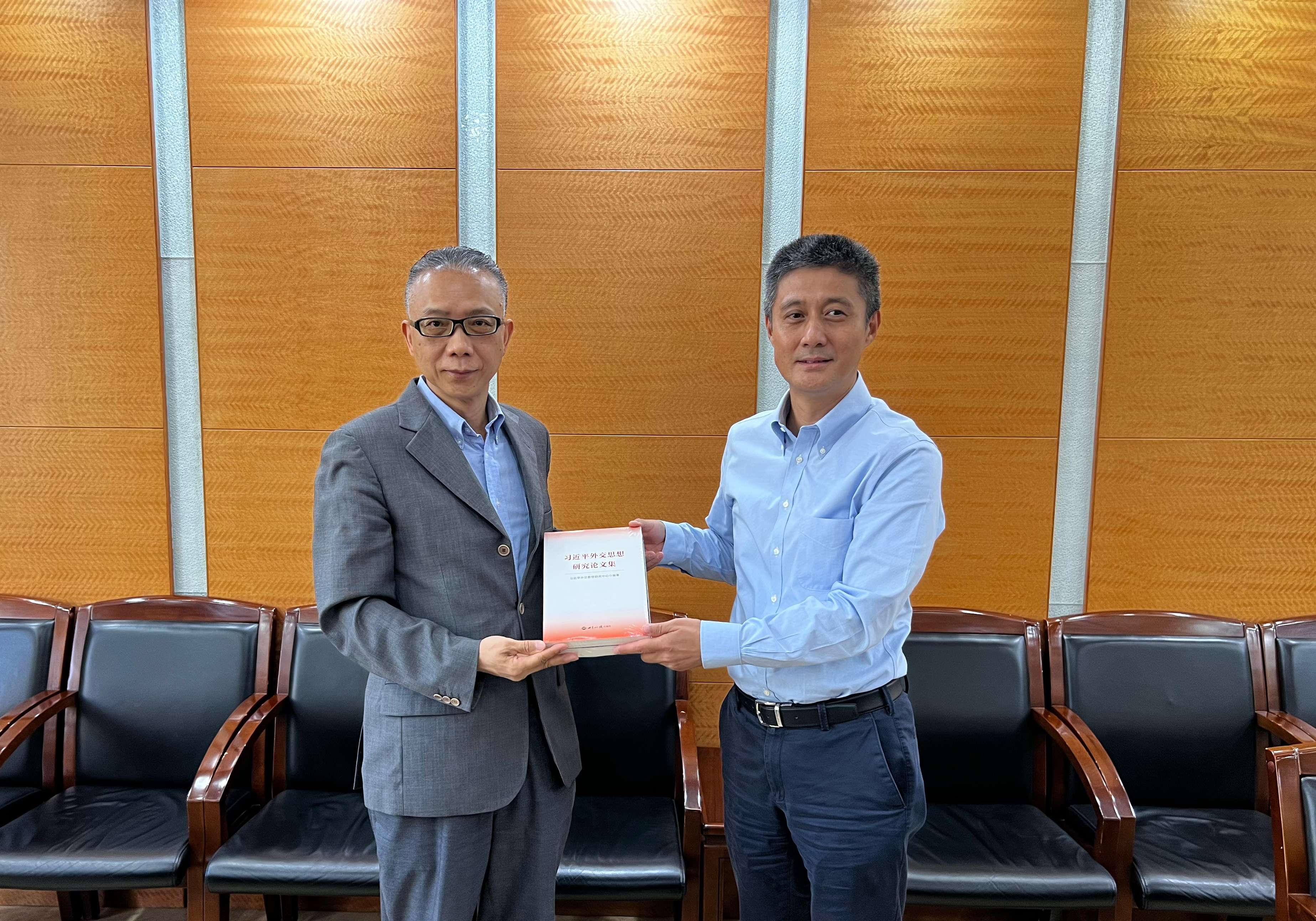 9月22日,习近平外交思想研究中心秘书长、中国国际问题研究院党委书记、院长徐步赴中国外文出版发行事业局,与高岸明副局长兼总编辑工作交流,就进一步加强合作,共同建设好“习近平外交思想和新时代中国外交”专题网站进行座谈。中国互联网新闻中心(中国网)总编辑王晓辉、习近平外交思想研究中心专职副秘书长于江等参加。