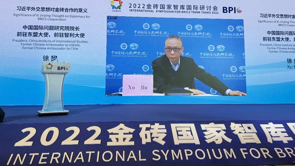 11月17日,中国国际问题研究院徐步院长应邀出席2022年金砖国家智库国际研讨会并作主旨发言。本次会议由金砖国家智库合作中方理事会主办、华侨大学和厦门国家会计学院协办。华侨大学副校长、金砖国家智库合作中方理事会理事林宏宇主持会议,来自中国、俄罗斯、印度、南非等国的专家学者围绕“加快金砖创新基地建设,贡献全球发展合作力量”深入研讨。