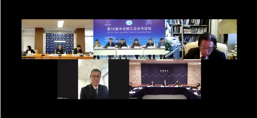12月6日,中国国际问题研究院、日本国际问题研究所与韩国国立外交院共同线上举办第十六届中日韩三边合作论坛。陈波院长、日本国际问题研究所吉田朋之执行所长、韩国国立外交院外交安保研究所李文熙所长致开幕辞,刘卿副院长担任中方主持人。与会专家围绕全球及地区安全形势、亚太经济合作前景及中日韩三边合作等议题展开深入探讨。