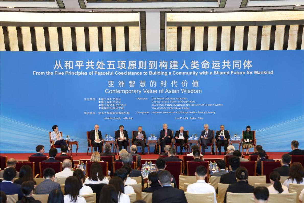 与会嘉宾指出,推动构建人类命运共同体是新形势下坚持弘扬和平共处五项原则的历史必然,赋予和平共处五项原则新的时代内涵。构建人类命运共同体理念传承了和平共处五项原则的精神内核,同时在和平共处五项原则基础上创新性发展,立足各国命运与共的客观现实,明确了建设持久和平、普遍安全、共同繁荣、开放包容、清洁美丽世界的总目标,为各国在共同地球家园携手前行指明了方向。国际社会应携手努力,继续弘扬和平共处五项原则,推动构建人类命运共同体,开创人类社会更加美好的未来。