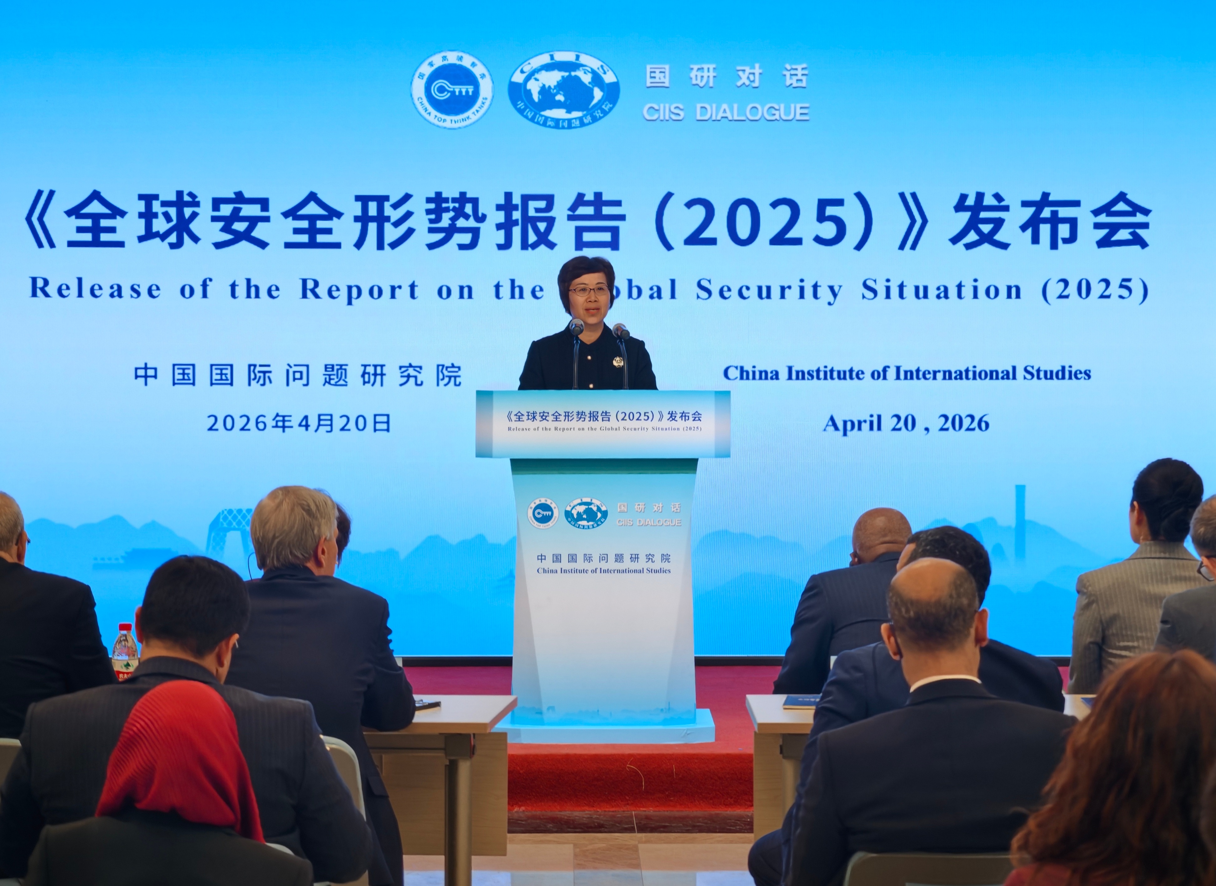 2026年4月20日,中国国际问题研究院在京举办《全球安全形势报告(2025)》(以下简称“研究报告”)发布会。陈波院长主持发布会。外交部安全司司长王立新围绕全球安全倡议作重点发言。来自60多个国家和国际组织的约20位驻华大使、80余位外交官和代表以及多位中方著名专家学者、媒体代表等,约120人参会。