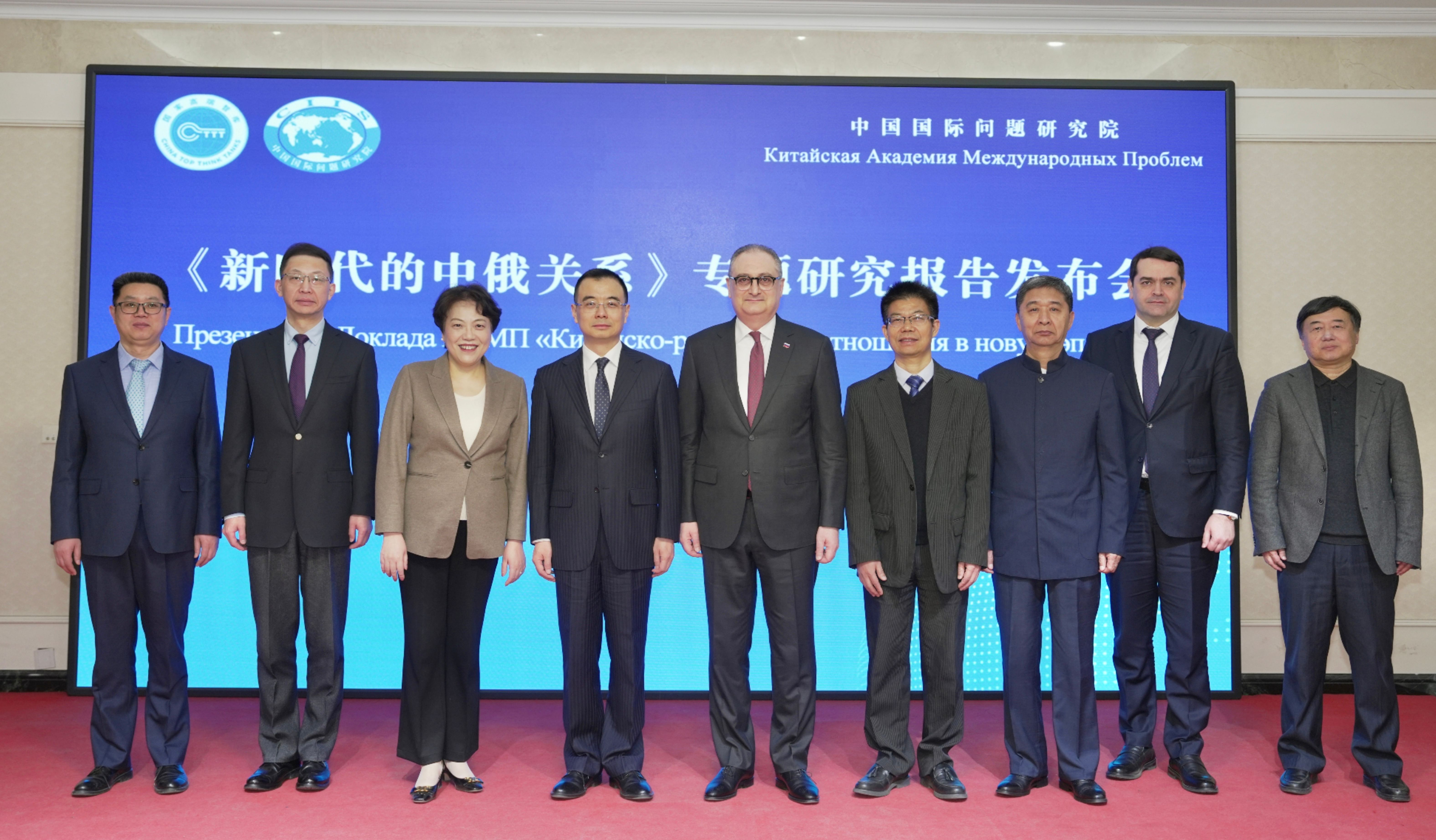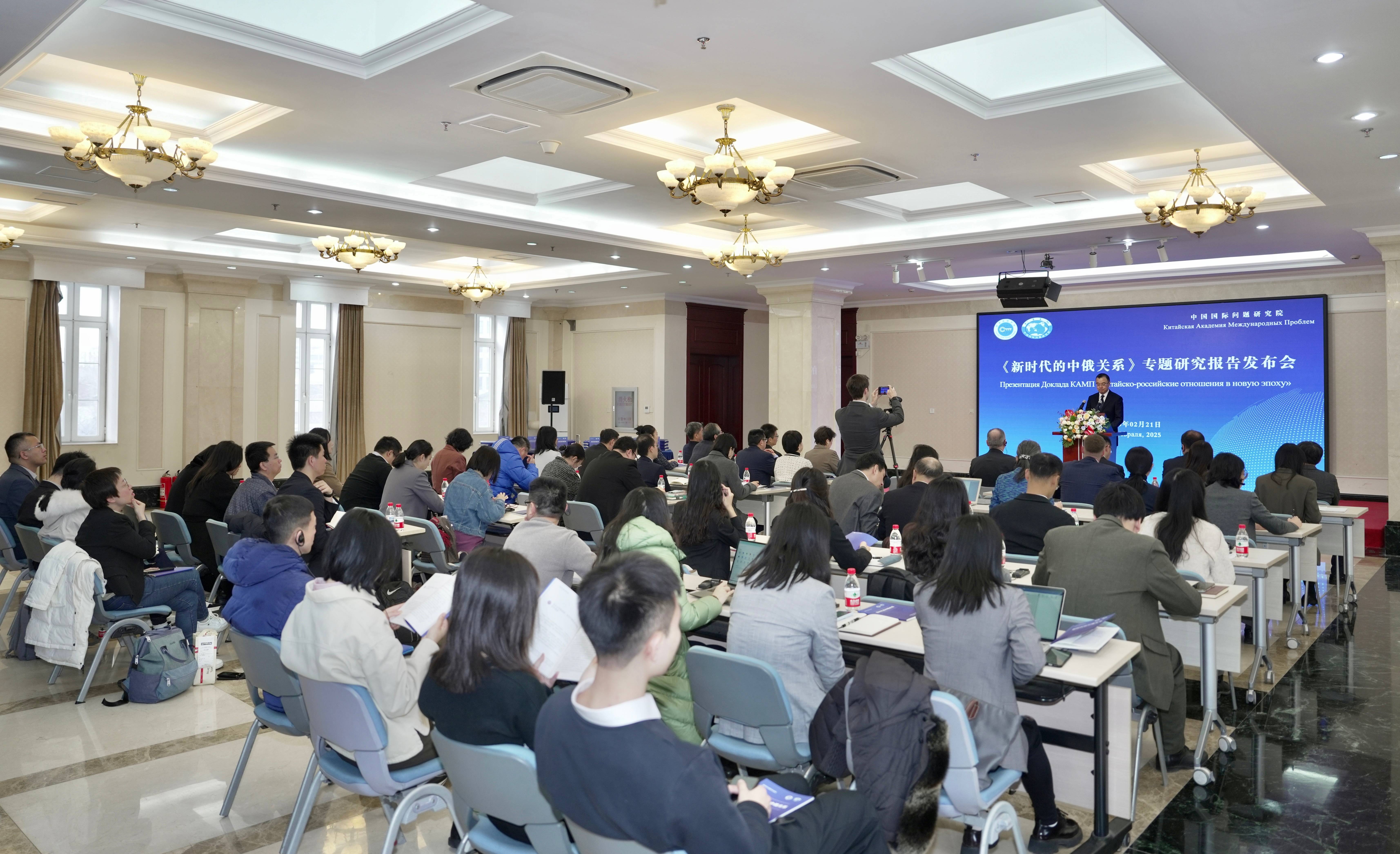 2025年2月21日,中国国际问题研究院举办《新时代的中俄关系》专题研究报告发布会。外交部部长助理刘彬、俄罗斯驻华大使莫尔古洛夫出席发布会并致辞。