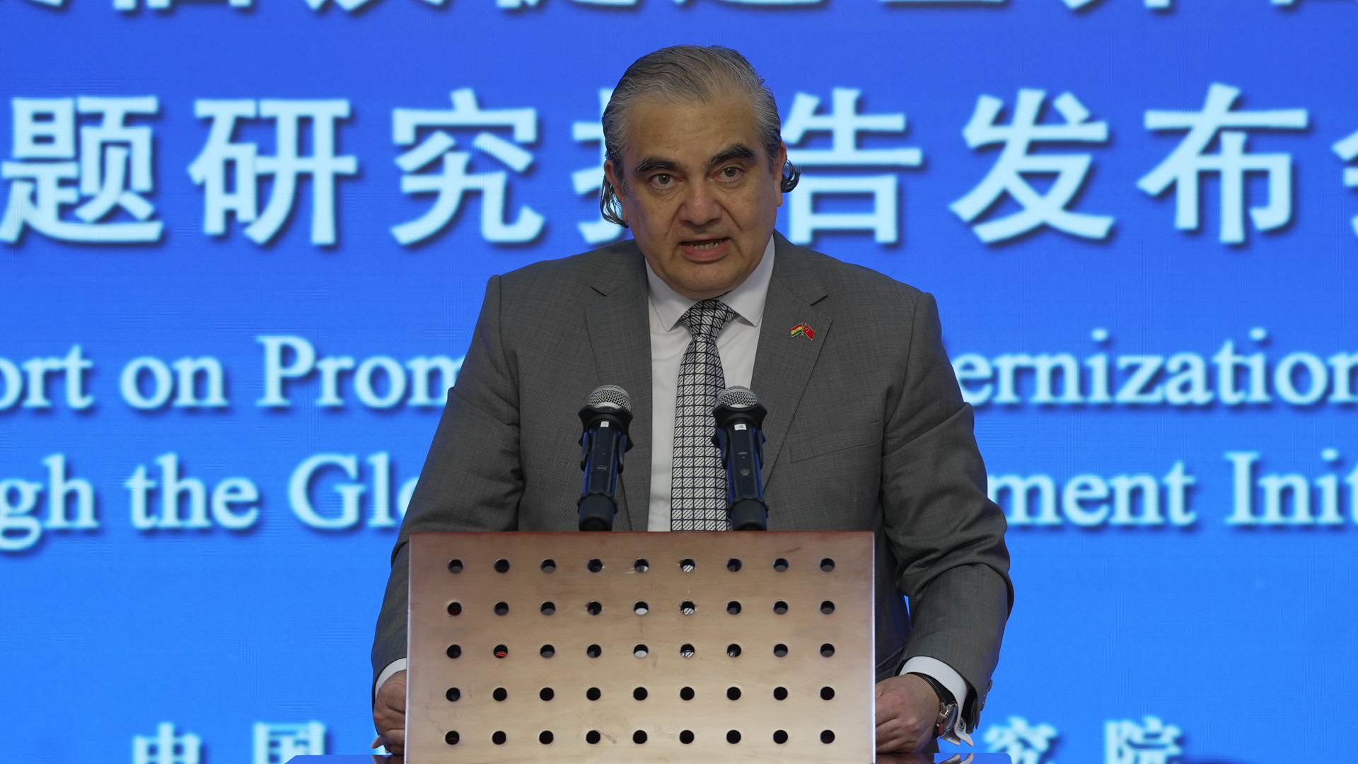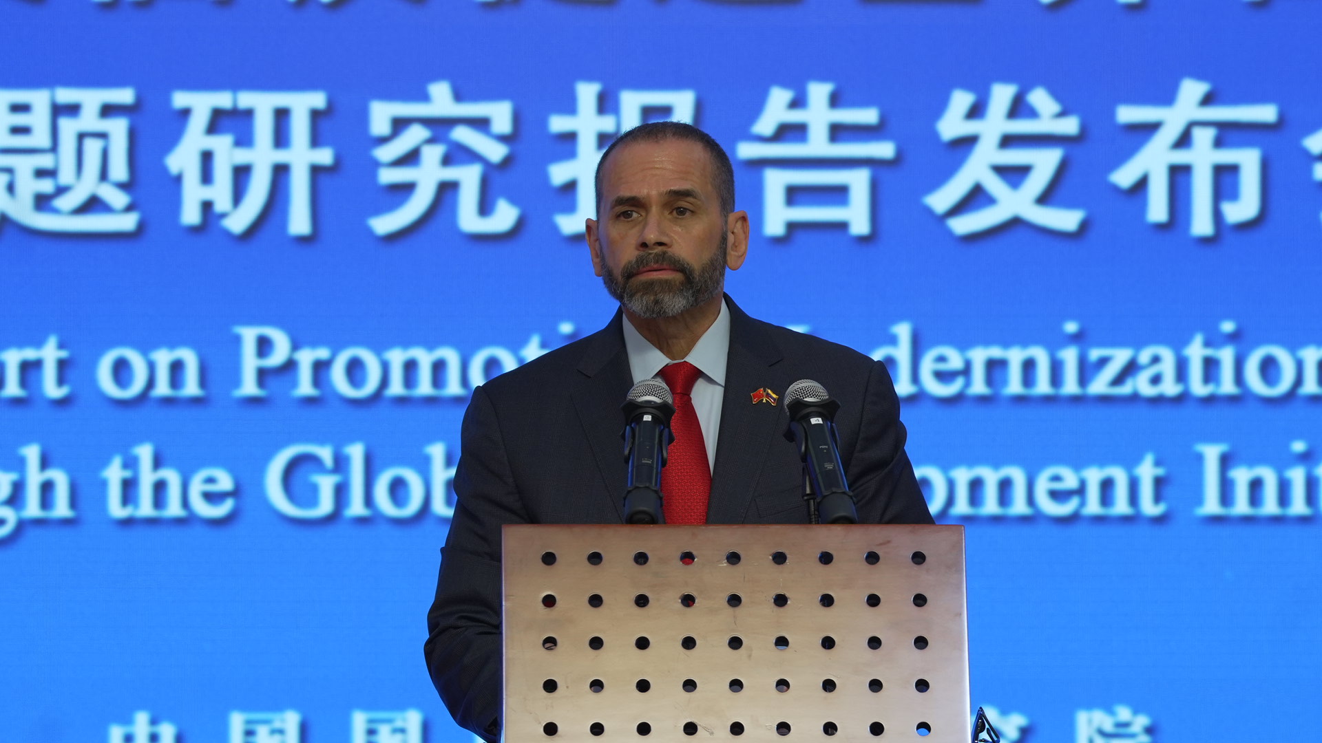 2025年6月9日,中国国际问题研究院举办《以全球发展倡议促进世界各国现代化》研究报告发布会。中国国际问题研究院院长陈波、巴巴多斯驻华大使亨利、格林纳达驻华大使马岩、东帝汶驻华大使罗瑞、玻利维亚驻华大使乌戈·西莱斯、委内瑞拉驻华大使雷米希奥·塞瓦略斯·伊查索、尼泊尔驻华大使克里希纳·奥利、联合国发展系统驻华协调员常启德、中国外文局副局长兼当代中国与世界研究院院长于运全、中央党校(国家行政学院)国际战略研究院院长吴志成、中国社会科学院国家全球战略智库副理事长王镭等出席发布会并作发言。