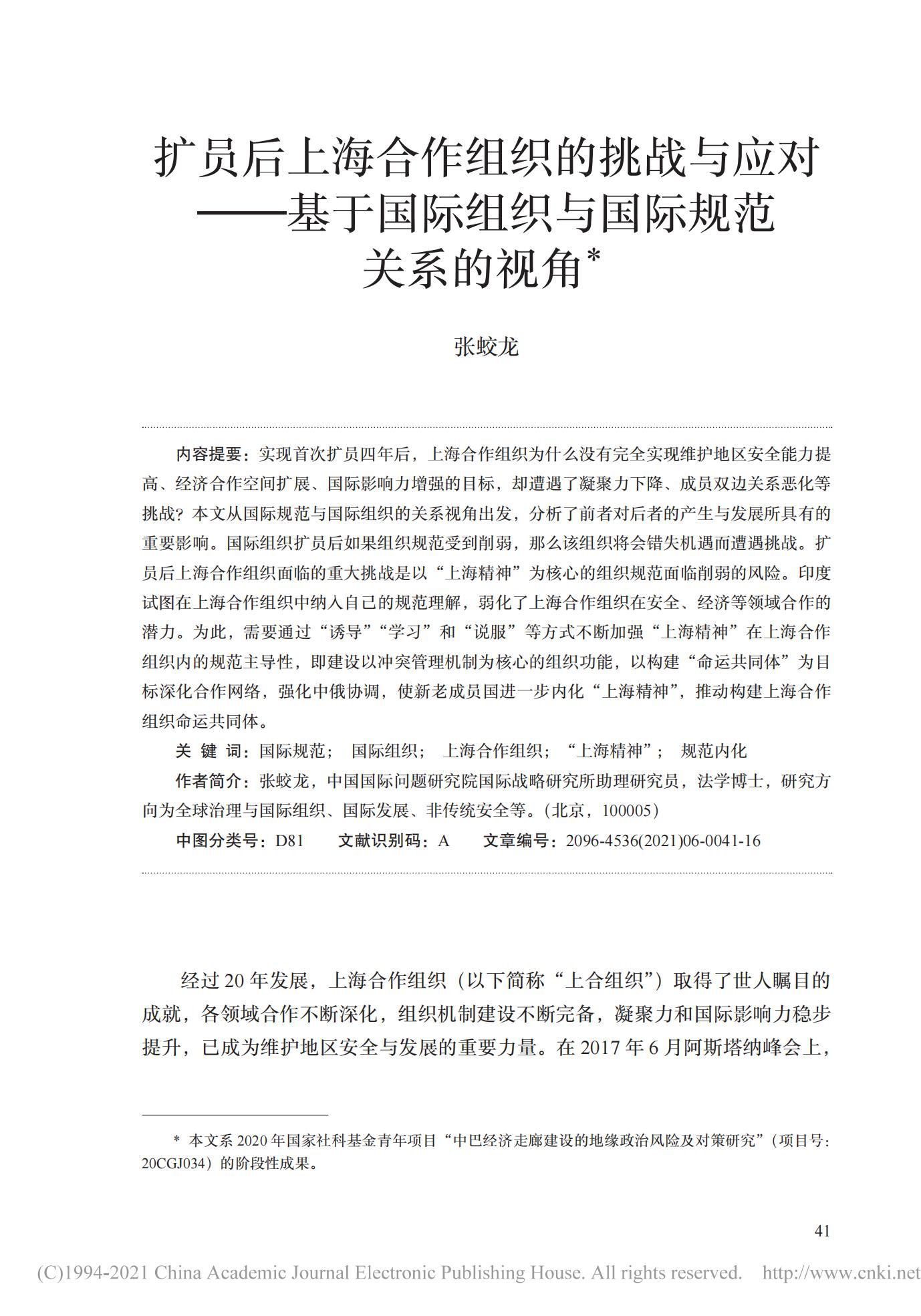 扩员后上海合作组织的挑战与应对——基于国际组织与国际规范关系的视角
