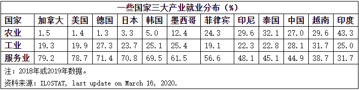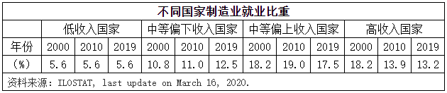 本世纪初以来,高收入国家制造业就业人员在全国就业中比重一路下降,中等收入国家比重提高。也就是说,发达经济体产业结构由工业进一步向服务业升级,产业工人相对减少;新兴经济体从农业向工业转移,产业工人比重增加。