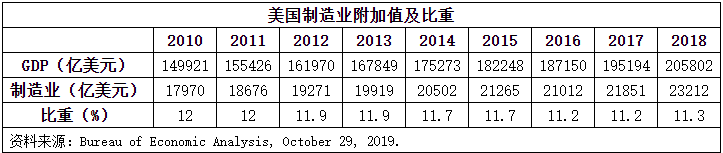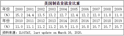总之,按照产业结构变化的一般规律,美国制造业附加值和就业在整个国民经济中的比重不可能再大幅提高。
